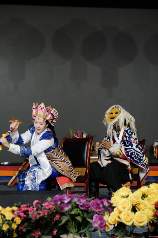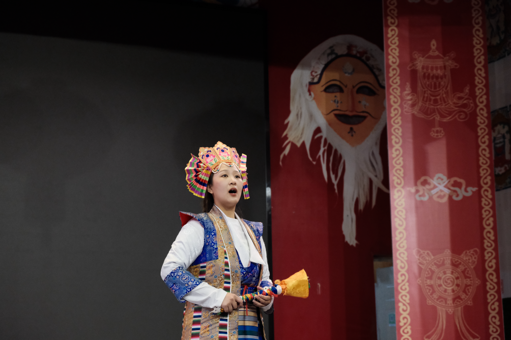 团队与雅砻扎西雪巴藏戏非遗传承人尼玛次仁老师紧密合作,将传统藏戏的程式化表演、唱腔与现代戏剧的叙事理念进行融合,共同创作了沉浸式戏剧工作坊《桥》。该剧以藏戏鼻祖唐东杰布为民造桥的传奇故事为蓝本,不仅是对传统文化的致敬,更是一次“非遗”活态传承与高校美育的深度对话。